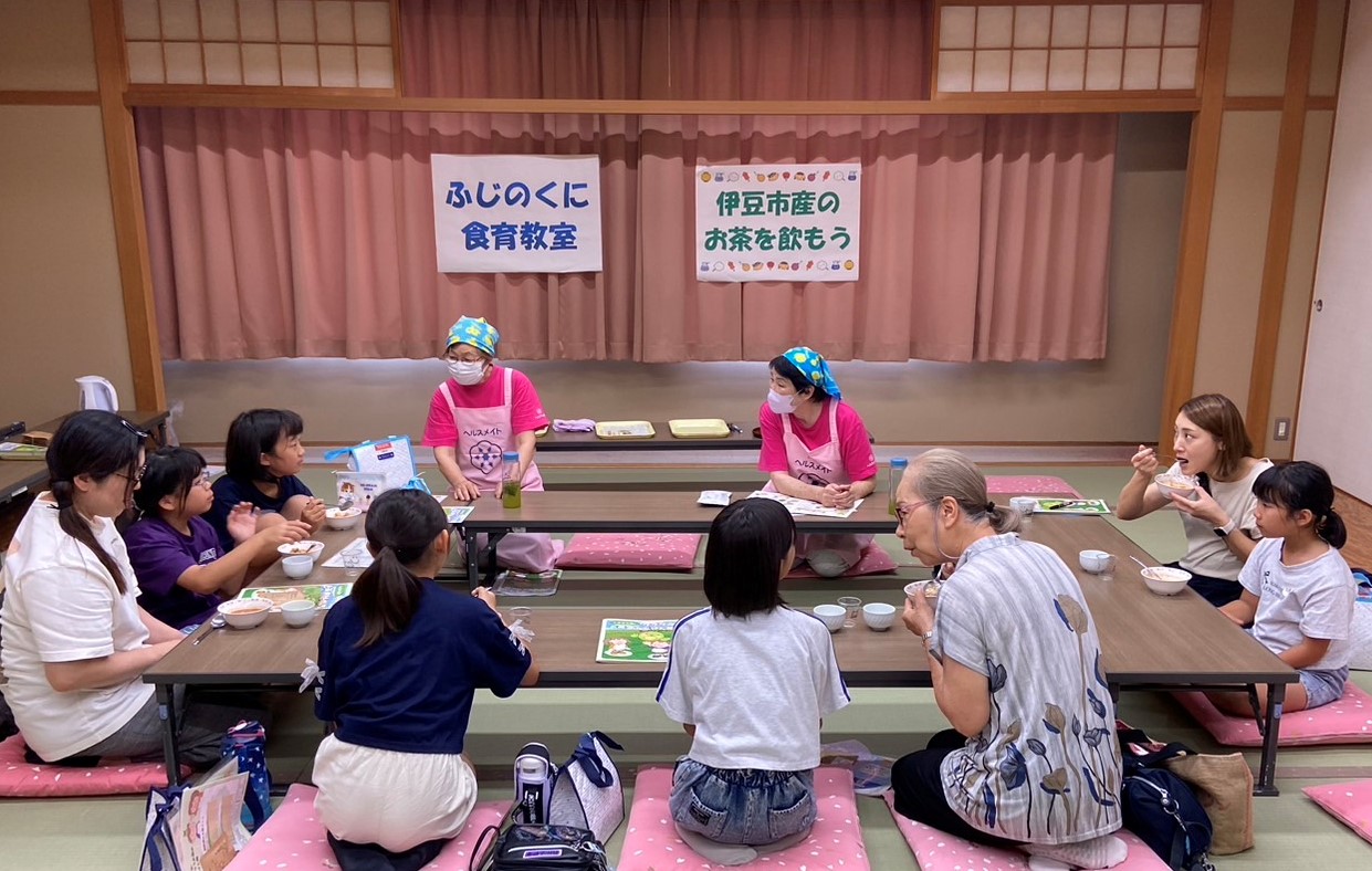 4月に総会を行い、年4回程度の全体研修会の他、修善寺・土肥・天城湯ケ島・中伊豆地区ごとに年間6回程度の定例自主研修(調理実習、活動についての話し合い等)と、地域の方々に参加を呼びかけ、料理講習会や食育教室等を行っています。