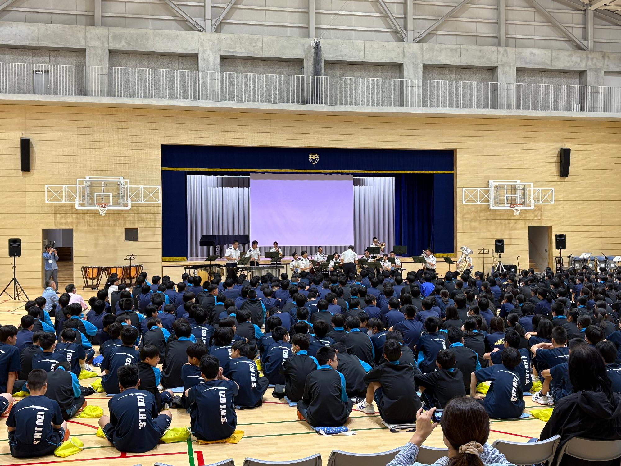 伊豆中学校に「プロの響き」!陸上自衛隊富士学校音楽隊による特別演奏会を開催