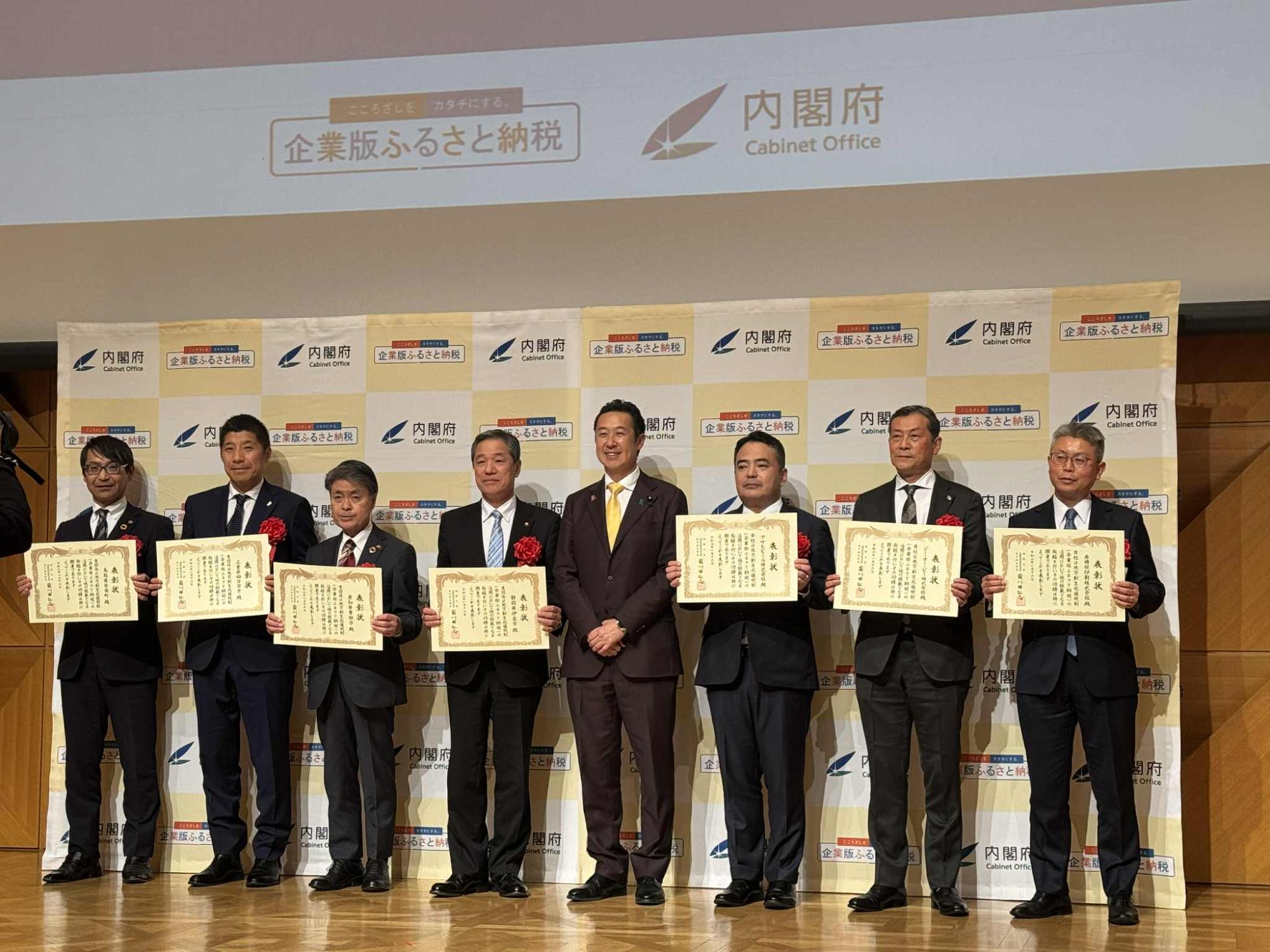 今回受賞した地方自治体・企業によるの黄川田大臣とのフォトセッション