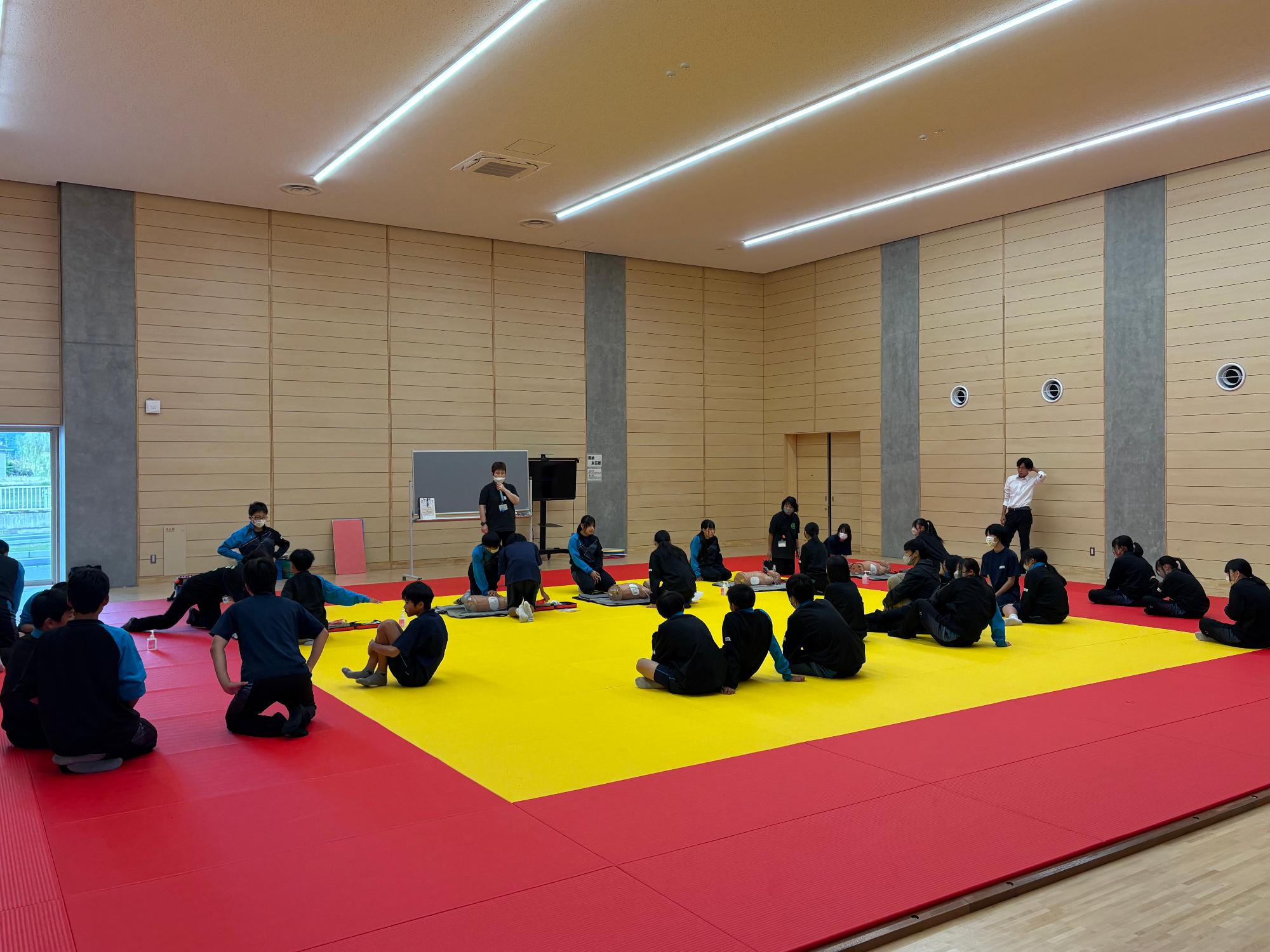 心肺蘇生法を習う生徒たち