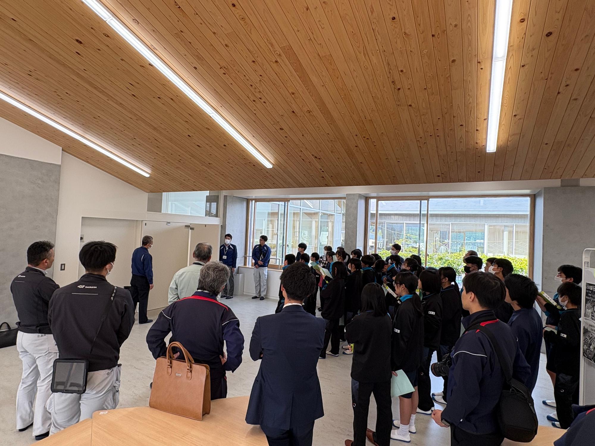 ・伊豆中学校を施工した木内建設株式会社様の全面協力による、校内の最新消防設備(防火シャッター等)の作動原理の学習