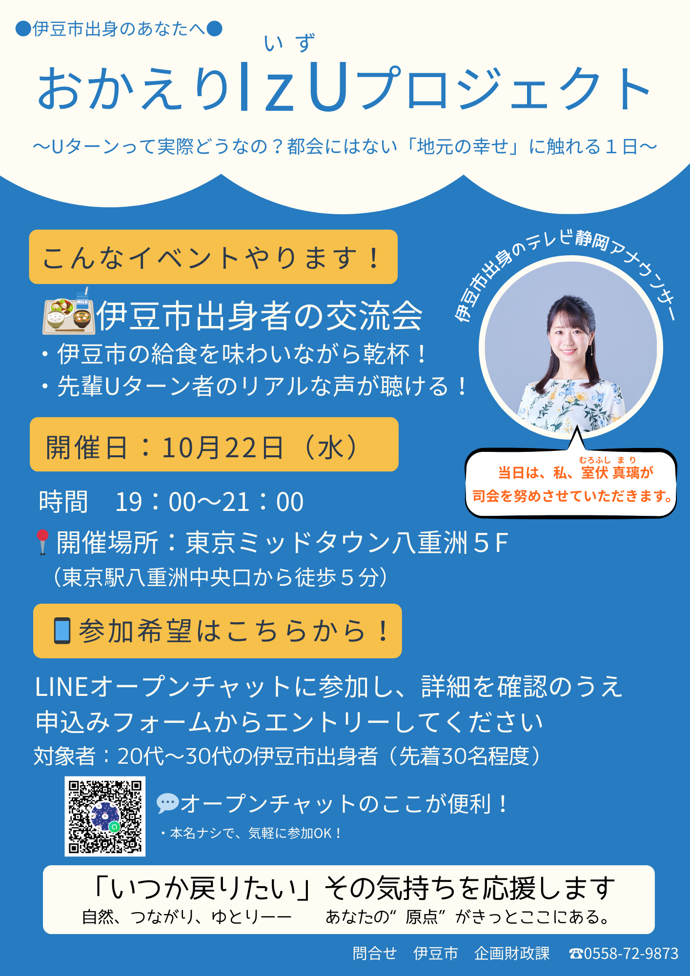 伊豆市出身の皆様に、進学や就職で地元を離れる人が多い中で、伊豆市のつながりをもう一度感じてもらうためのプロジェクトです。