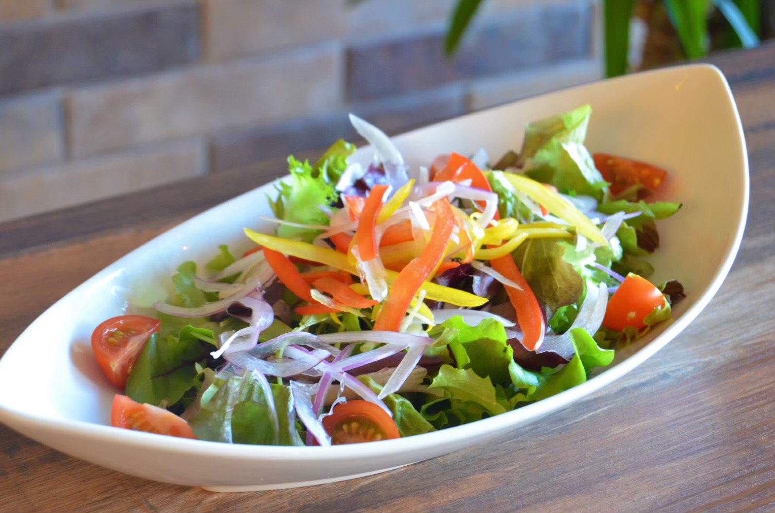 野菜はすべて静岡県産を使用し、季節ごとにたっぷりの野菜を召し上がっていただけるサラダです。評判のドレッシングは、伊豆産の玉ねぎをたっぷりと使っています。
